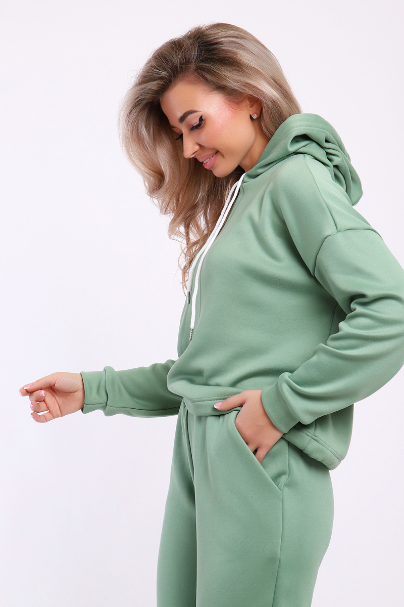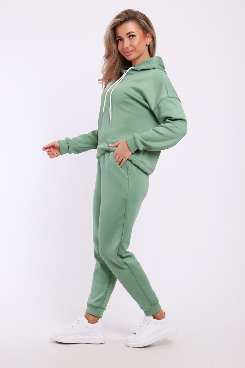 Модный утеплённый костюм выполнен из материала нового поколения футер найк - спорт. Это мягкое и эластичное полотно, утеплённое мелковорсным мехом, цвет меха в тон основного цвета. Ворс направленный 3 мм, мягкий и не блестящий. Полотно эластичное и очень приятное на ощупь с обеих сторон. Благодаря составу не вытягивается, не образует катышки, не сыпется и не требует особого ухода. Костюм такого плана - это модная и стильная вещь, идеально подходящая для активного образа жизни, отдыха и для повседневной носки. Модель выполнена из специально разработанной для спортивных занятий ткани, которая отводит влагу, позволяет коже дышать и настолько эластична, что тянется в 4 - х направлениях. Поэтому костюм идеален для зимних видов спорта, например, катания на коньках, сноуборде или лыжах в холодное время, а также для скандинавской ходьбы. Костюм состоит из толстовки и брюк. Толстовка с капюшоном и шнурком. Линия плеча спущена, длинный рукав. По низу толстовки имеется резинка с фиксатором, с помощью которой Вы можете